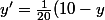 a) Montrer que y est solution de si et seulement si, z est solution de léquation différentielle (E1) : z=-(1/2)z+1/20