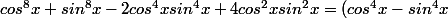 (sinx)puissance 8 + (cosx)puissance8 + 4sin²x.cos²x - 2(sinx)puissance4.(cosx) puissance4