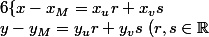 Le système d'équations paramétriques d'un plan dont les vecteurs directeurs sont u et v et contenant le point M est: