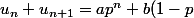 ^n + ap^{n + 1} + b(1 - p)^{n + 1} = ap^n(1 + p) + b(1 - p)^n(2 - p) = ap^np^2 + b(1 - p)^n(1 - p)^2 = ap^{n + 2} + b(1 - p)^{n + 2} = u_{n + 2})