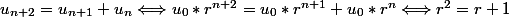 rudy196 a écrit:Ah oui je vois merci mais pourquoi on ne met pas tout d'un côté égal à 0 et avec ça on met uo×r^n en facteur ( -r^2 + r + 1 )