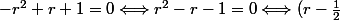 ^2 -\frac{5}{4} = 0 \Longleftrightarrow (r -\frac{1-\sqrt5}{2})(r -\frac{1+\sqrt5}{2}))