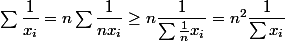 Ben, par Cauchy Schwartz!!! avec xi = (racine(xi))² et 1/xi=(1/racine(xi))²
