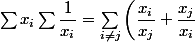 + \sum \dfrac {x_i}{x_i} \ge 2\dfrac {n^2 - n}{2} + n = n^2)