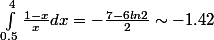 Il faut couper le calcul en deux : de 0,5 à 1, et de 1 à 4, en prenant la valeur absolue de la 2ème.