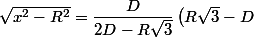 ^2} \left(R\sqrt{3}-D\right)^2+R^2})