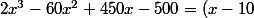 2x3 -60x² + 450x -500 = (x-10)(2x²) -40x² + 450x -500 = (x-10)(2x²+?x) + ? = ...