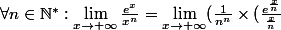 La fonction exponentielle croît plus vite que n'importe quelle autres fonctions. Y'a pas besoin d'en dire plus je pense.