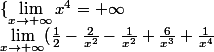 =\lim_{x\to+\infty}x^4.\lim_{x\to +\infty}(\frac{1}{2}-\frac{2}{x^2}-\frac{1}{x^2}+\frac{6}{x^3}+\frac{1}{x^4})=+\infty)