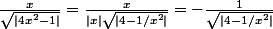 }=\frac{x}{\sqrt{|4x^2-1|}}=\frac{x}{\sqrt{4x^2|1-\frac{1}{4x^2}|}}=\frac{x}{|2x|\sqrt{|1-\frac{1}{4x^2}|}})