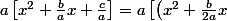 ^2 - \left(\frac{b}{2a}\right)^2\right + \frac{c}{a} ] = a \left[\left(x + \frac{b}{2a}\right)^2 - \frac{b^2}{4a^2} + \frac{c}{a}\right])