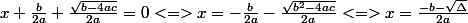 donc l'équation ax^2+bx+c=0 admet des racines réelles (éventuellement double) si et seulement si ....