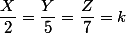 Trouver trois nombres X,Y,Z sachant qu'ils sont proportionnels à 2,5,7 et que leur produit est égal à 560 .