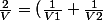 1/V2 = 2/V-1/V1 soit 2/12-1/15
