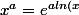 comme on te l'a dit, x^a = exp(aln(x )) c'est une définition, pas une notation... Ta question n'a aucun sens.