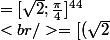 ^{44} = (\sqrt{2}(cos(\frac{\pi}{4})+isin(\frac{\pi}{4})))^{44} \\<br />= [\sqrt{2};\frac{\pi}{4}]^{44} \\<br />= [(\sqrt{2})^{44};11\pi] \\<br />= [2^{22};\pi])