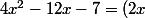 ^2 - 2 * 2x * 3 + ... - ... - 7 = (2x - ...)^2 - ... = ....)
