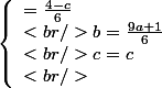 on a toutes nos valeurs: a= 1/6, b= -2/3, c=1