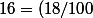 si 16 represente 18%(=0.18) de y alors 100% soit y vaut
