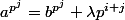 ^p = \Big(b^{p^j}+ \lambda p^{i+j}\Big)^p<br />=\sum_{k=0}^p{p\choose k}\Big(\lambda p^{i+j}\Big)^k \Big(b^{p^j}\Big)^{p-k})