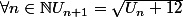 On considère la suite (Un) à termes positifs telle que Uo=5 et vérifiant pour tout entier naturel n Un+1=VUn+12 (racine de Un +12)