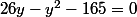 => 26y - y^2 - 165 = 0