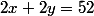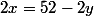 52 = 2 * (x + y) => 26 = x + y => 26 - y = x