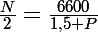 N/2(1,5+P)=6600 Équation 1n*(1,8+P)=5220 Équation 2m*(P+0.8) = 1440 Équation 3N/2+n+m = N Équation 4De [4] tu déduis :