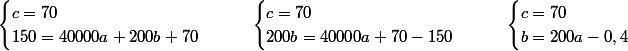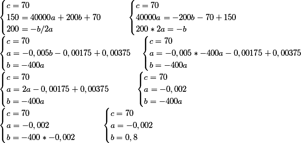 comme (200;150) est le sommet j'ai : 200 = -b/2a