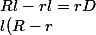 = rD \\<br />l = \frac{rD}{R - r})