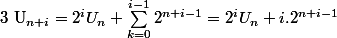 J'ai U(n+i) = (2^i)*U(n) +Somme(k=0->i-1)[2^(n+k)]