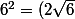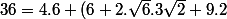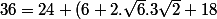 6² = (2;)6)² + (;)6 + 3;)2)² - 2 * (2;)6) * (;)6 + 3;)2) * cos60. ??