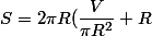 =2 \pi R(\dfrac{V}{\pi R^2}+R))