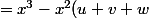 (x - v)(x - w) = [x^2 - (u + v)x + uv](x - w) = x^3 - x^2w - (u + v)x^2 + (u + v)wx + uvx - uvw)