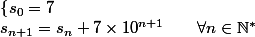 Mon petit Clembou, c'est 10^(-n+1), non? Car avec 10^(n+1), tu rajoutes 70, puis 700, puis 7 000, puis 70 000 etc...