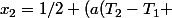 x_2 = 1/2(a(T_2)^2) + (T_2)