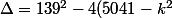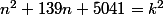 Soit n un entier . Quelles sont les valeurs possibles de n telles que \sqrt{n^{2}+139n+5041} est un entier ?