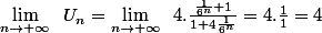 }{6^n.(1+\frac4{6^n}}\\<br />U_n = 4.\frac{\frac1{6^n}+1}{1+\frac4{6^n}}\\<br />U_n = 4.\frac{\frac1{6^n}+1}{1+4.\frac1{6^n}}\\)