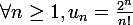 On pose, pour tout entier naturel n=>1, un=2^n/n!.