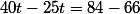 1) 66 = 25h + 40t ... vue que la vitesse fois le temps te donne une distance