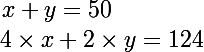 On nous dit que Robert a vendu 50 têtes et 124 pattes, bien sur tous les animaux n'ont qu'une seule tête et 2 ou 4 pattes:we: