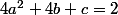 Remplace dans la troisième équation (16a+4b) par sa valeur qui est 4... ça donne 4+c=0