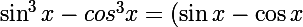 f(x)=(1/sin x)/(1/sin x ) mais je veux juste savoir si :sin^3 x-cos^3x est positif ou négatif et a quel moment ainsi que: cos^2x*sin^2x