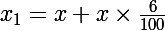 x----augm 6%----->x+x*6/100=x+0.06x=x(1+0.06)=1.06x