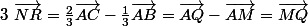 en deduire vecteur NR = 2/3AC-1/3AB