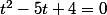 t^2-5t+4=0, équation du second degré qu'il est impératif de savoir résoudre en 1°S , de même le fait qu'une équation du second de gré admette au plus 2 racines est un résultat qui a été démontré dans le cadre du cours sur le 2° degré! A mon avis, il est temps que tu te réveilles!
