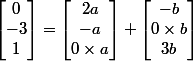 Or en résolvant ce système on trouve que b (et a) doit valoir deux valeurs différentes (lesquelles?). Donc pas de solutions, a et b n'existent pas et les vecteurs ne sont pas coplanaires.