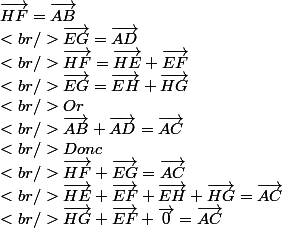 demontrer que vecteurHG + vecteurEF = vecteurAC