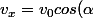 Classiquement, quand tu jettes quelque chose, tu le décomposes selon l'axe vertical (y) et horizontal (x).