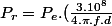 Où : Pr est la puissance reçue en watts, Pe la puissance PAR (puissance apparente rayonnée) en watts, f la fréquence en mégahertz, d la distance en mètres entre l'émetteur et le récepteur.